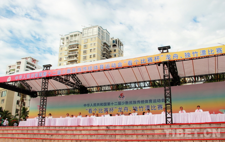 中國西藏網訊 11月23日,第十二屆全國少數民族傳統(tǒng)體育運動會(以下簡稱運動會)龍舟項目在海南省三亞市三亞河開賽。