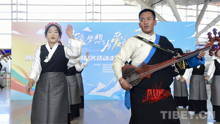 圖為西藏文藝志愿者們?yōu)楝F(xiàn)場旅客帶來精彩的文藝節(jié)目 攝影:趙振宇