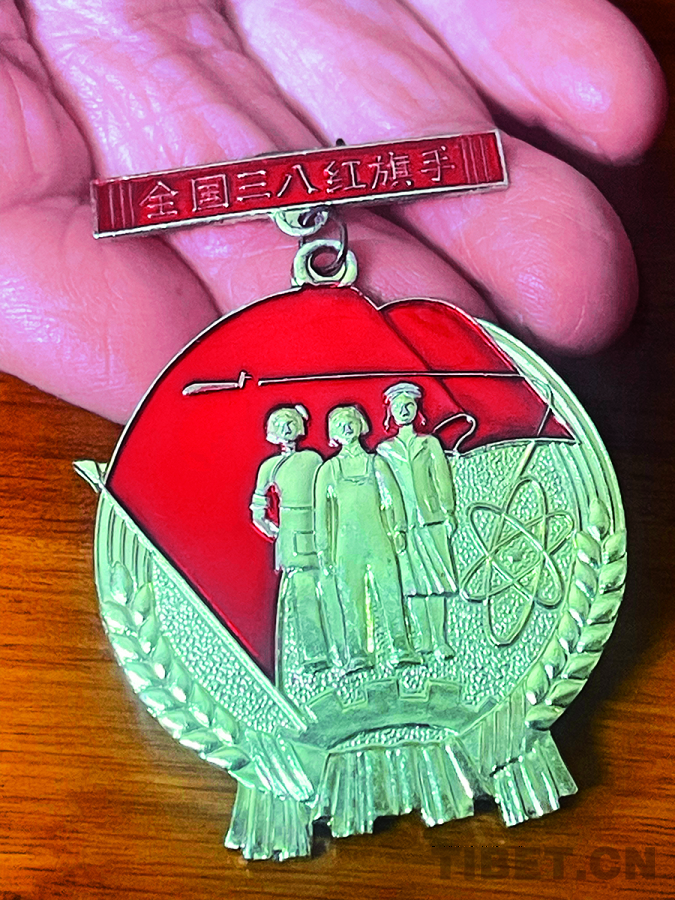 圖為巴西老人獲得的全國三八紅旗手獎?wù)?/p>