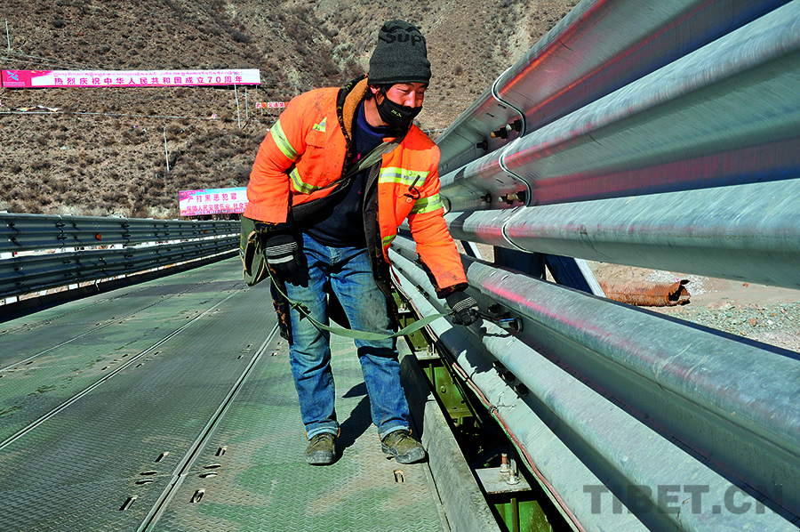 在西藏公路上行車(chē),往往能見(jiàn)到忙碌的養(yǎng)護(hù)人。他們要么揮锨清除公路邊的雜物,要么驅(qū)車(chē)沿途巡查,要么在群山中清除路障,要么在緊鋼架橋護(hù)欄上的螺絲。在一條條公路上,川流不息的不僅有車(chē)輛,還有勇往直前的徒步者。有沒(méi)有人注意到,自己春夏秋冬能在西藏大地上自由穿梭,是因?yàn)楦咴系拇舐菲教箷惩?。為他們保駕護(hù)航的,正是那些猶如盛開(kāi)在山腳下、公路旁黃色小花的養(yǎng)護(hù)人。