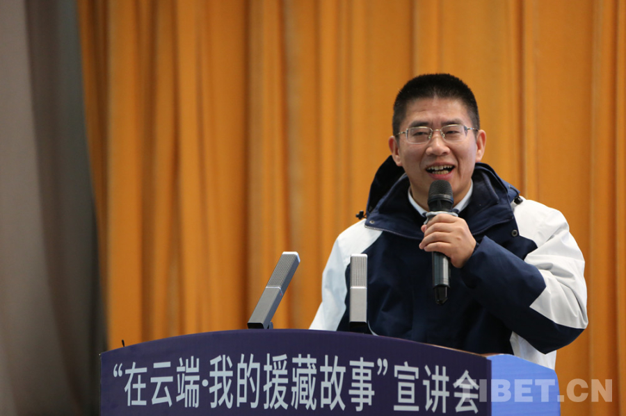 圖為邱鎮(zhèn)江在宣講 攝影:龍真多吉