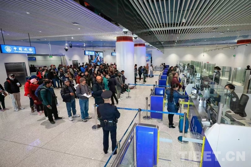 圖為拉薩至尼泊爾加德滿都國際航線正式復(fù)航通關(guān) 攝影:蔣美靈