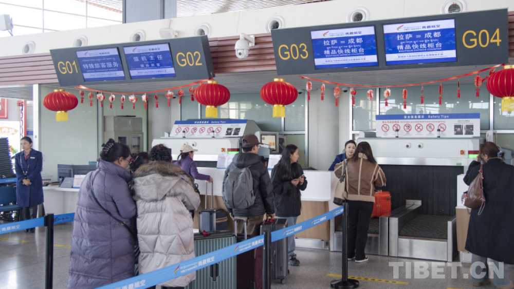“您好,先生,請問您乘坐藏航哪趟航班?請出示您的身份證。您有托運行李嗎?托運行李中有鋰電池、充電寶嗎?這些是不能托運的,只能隨身攜帶。請拿好您的登機牌。再見,祝您歸途愉快!”1月25日,記者在拉薩貢嘎國際機場T3航站樓G島柜臺,見到了西藏航空公司拉薩基地值機服務隊隊長次仁卓嘎。