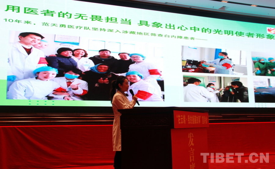 圖為德陽市人民醫(yī)院宣傳部干事彭曉萌講述該院“范天勇援藏醫(yī)療服務(wù)隊(duì)”的援藏故事 攝影:劉莉