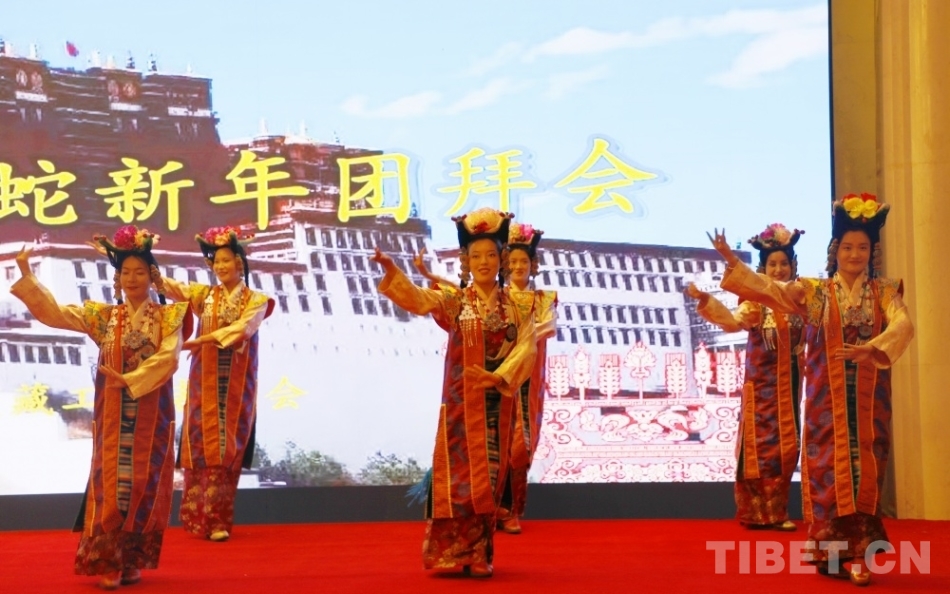 隨著拉薩城關(guān)區(qū)娘熱民間藝術(shù)團(tuán)的歌舞表演開(kāi)始,《祝?!窐?lè)聲悠揚(yáng),團(tuán)拜會(huì)正式拉開(kāi)帷幕。“老班長(zhǎng)”葉鵬穿上自己的綠軍裝重新演繹民族團(tuán)結(jié)與軍民深情的經(jīng)典歌舞《洗衣歌》;青少年學(xué)生們和著優(yōu)美的旋律,以歡快的舞步跳起《崗巴拉姆》,點(diǎn)燃了現(xiàn)場(chǎng)氣氛;一級(jí)演員劉媛媛演唱的《五星紅旗》《國(guó)家》飽含深情,北京首都軍之魂合唱藝術(shù)團(tuán)的大合唱《共筑中國(guó)夢(mèng)》《走向復(fù)興》慷慨激昂,表達(dá)了大家對(duì)祖國(guó)的熱愛(ài)……還有悠揚(yáng)的扎木念表演、男聲獨(dú)唱等節(jié)目豐富精彩。大家在歡聲笑語(yǔ)中共同感受著節(jié)日的喜悅,共同祝愿西藏在新的一年里再創(chuàng)輝煌,共祝西藏各族人民幸福安康,羅薩扎西德勒。(中國(guó)西藏網(wǎng) 記者/王茜 實(shí)習(xí)生/扎西央措)