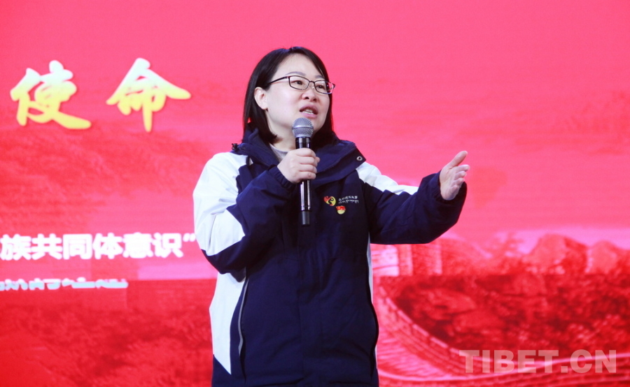 圖為四川省攀枝花市農(nóng)業(yè)農(nóng)村局干部揚(yáng)秀英講述該局黨組成員、副局長(zhǎng)寧秀蓉的援藏故事 攝影:劉莉