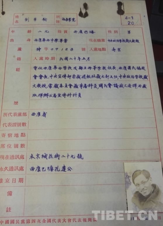 圖為劉家駒參加相關會議的一張報到表(喜饒尼瑪供圖)
