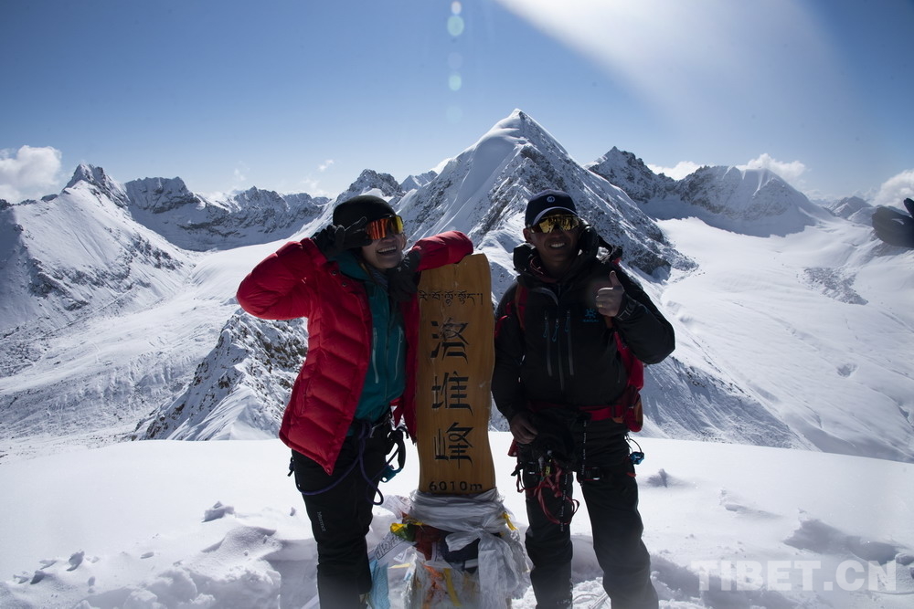 從海拔5400米,到海拔6010米,上午10時,記者終于抵達洛堆峰峰頂。這一路,山勢陡峭,冰縫眾多,高海拔環(huán)境帶來的是體力、耐力以及心理的多重考驗,借助上升器和安全繩穩(wěn)等技術裝備,我們一路相互鼓勵抵達峰頂。