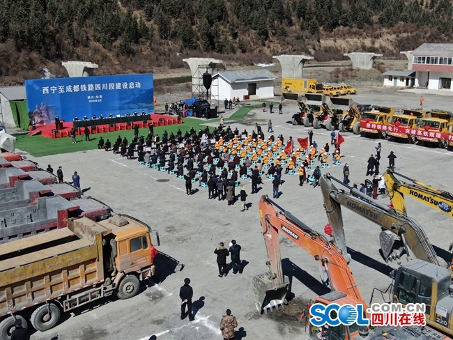 3月5日,西寧至成都鐵路四川段啟動(dòng)建設(shè),在積雪覆蓋的川西高原,當(dāng)?shù)厝罕姶┥厦褡宸b,載歌載舞,表達(dá)喜悅和歡欣。