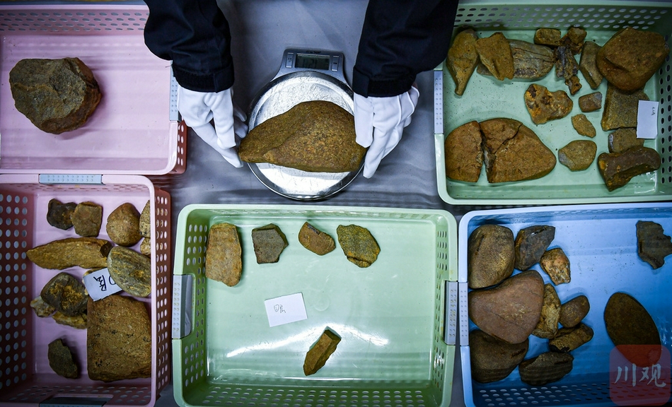11月1日,考古人員對發(fā)掘出的每件石器進行稱重。四川在線記者 何海洋 攝