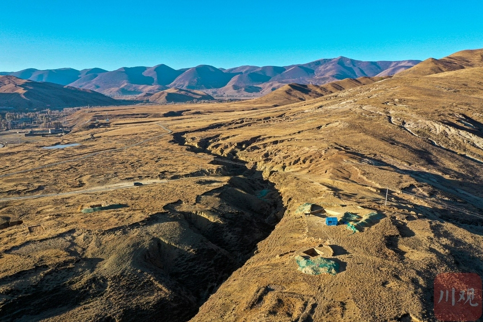 10月29日,鳥瞰位于甘孜州稻城縣金珠鎮(zhèn)七家-平洛村的皮洛遺址。四川在線記者 何海洋 攝