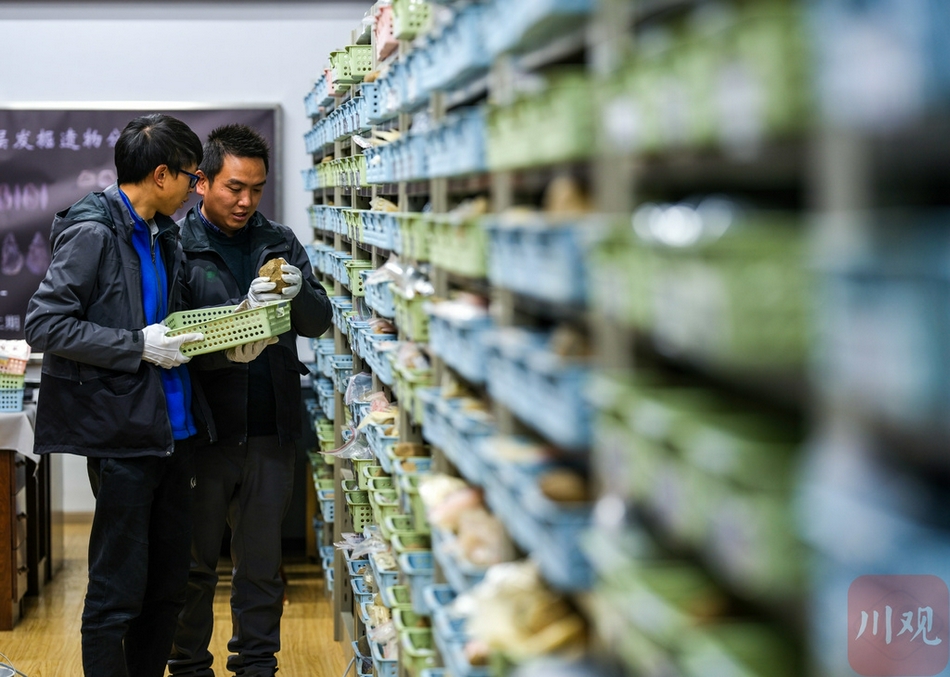 10月28日,考古人員在整理分類發(fā)掘出的石器。四川在線記者 何海洋 攝