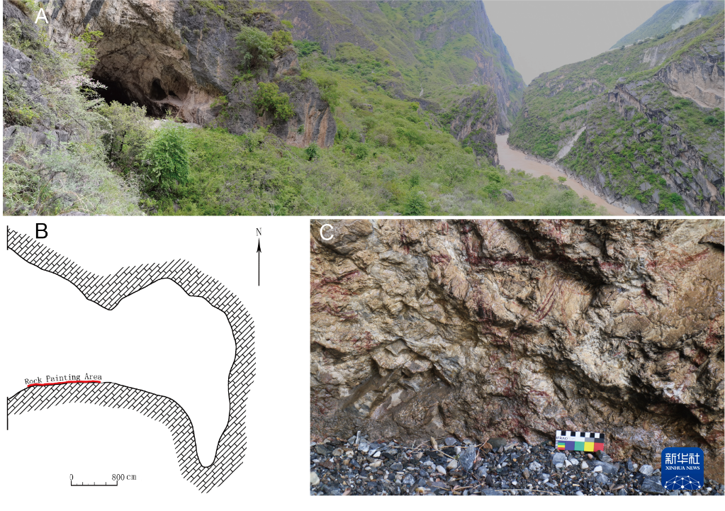 年代測定表明,位于云南省麗江市金沙江虎跳峽的萬人洞巖畫可追溯至晚更新世末至全新世早期,是目前有年代數(shù)據(jù)記錄的東亞大陸最古老的彩繪巖畫,由該地區(qū)舊石器時代的狩獵—采集人群創(chuàng)作。相關(guān)研究成果于近期發(fā)表在國際考古學期刊《考古科學雜志》。