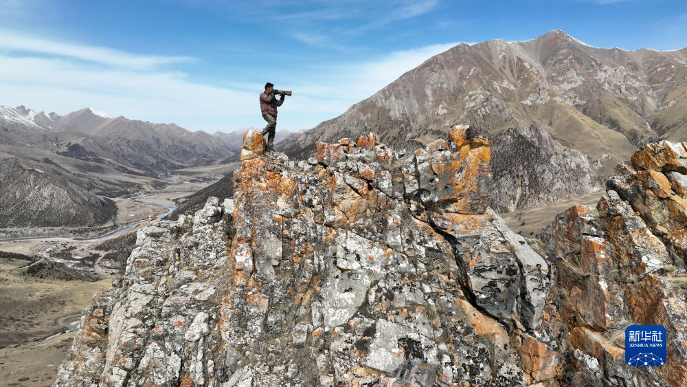 2月22日,更求曲朋在昂賽大峽谷里巡護(hù)途中拍照片。新華社記者 費茂華 攝