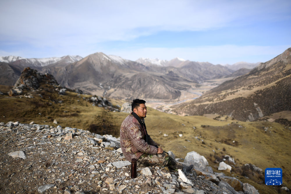 2月22日,更求曲朋在巡護(hù)途中休息。新華社記者 張宏祥 攝