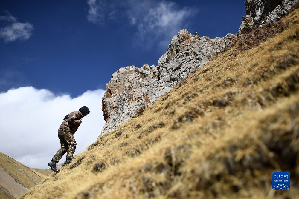 2月22日,更求曲朋在昂賽大峽谷內(nèi)巡護(hù)。新華社記者 費茂華 攝
