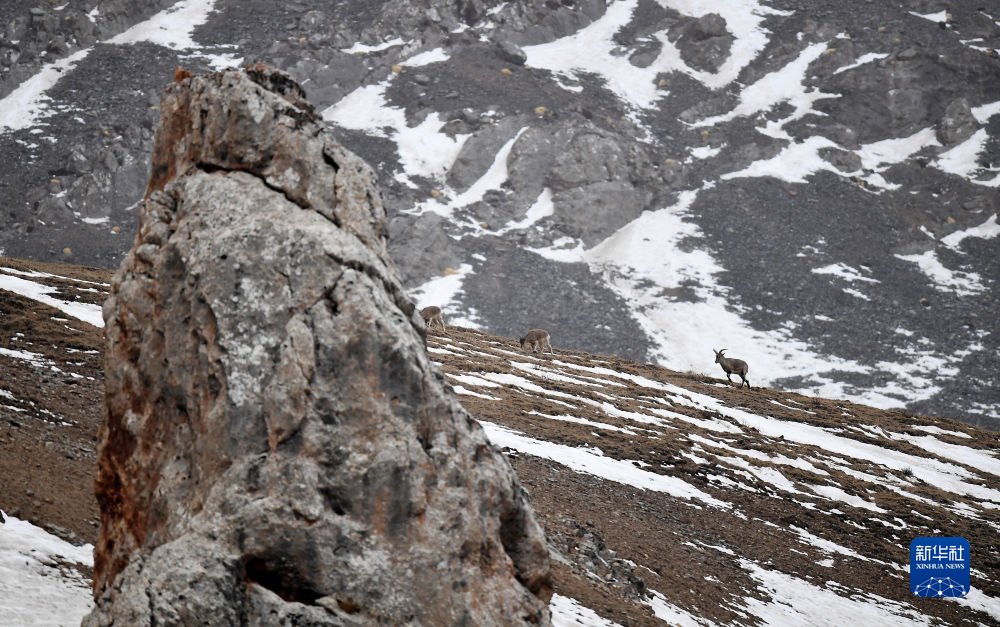 這是2月21日在昂賽大峽谷內(nèi)拍攝的巖羊。新華社記者 張宏祥 攝