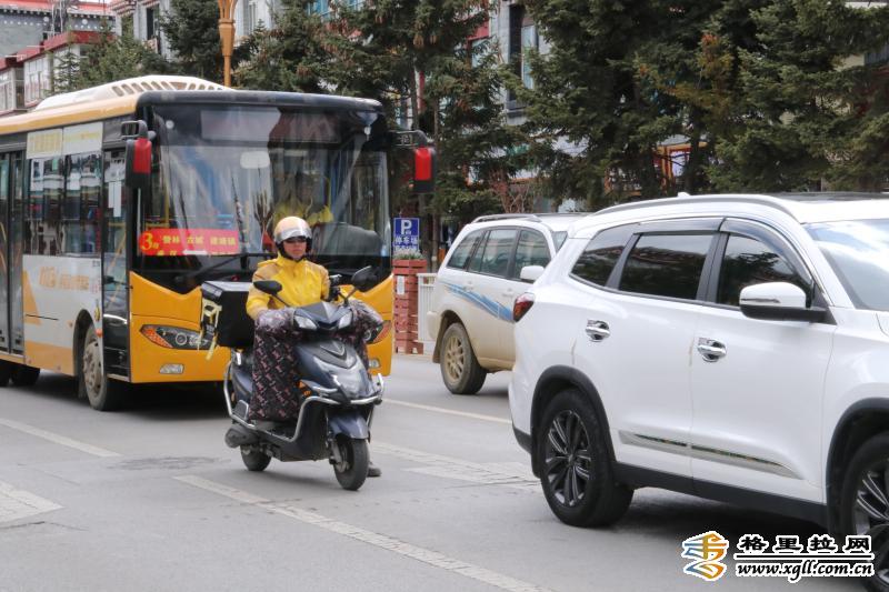 五一”假期期間,外賣小哥們每天穿行在大街小巷,不辭辛苦,只為給市民生活帶去便利。(洛桑央宗 攝影報(bào)道)