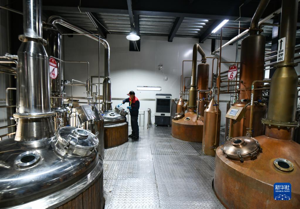 6月15日,在四川省阿壩州小金縣“金山玫瑰”基地,工人操作玫瑰花精油純露萃取機(jī)。新華社記者 王曦 攝