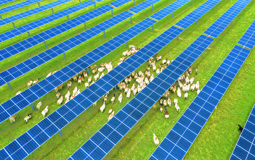 最貧瘠惡劣的地方,往往開(kāi)出最驚艷的鮮花。用“光伏+”作文章,帶來(lái)的是越來(lái)越多的美好愿景。曾經(jīng)一片荒漠的塔拉灘一步步成為太陽(yáng)能光伏板的“藍(lán)?!保诠夥宓摹氨幼o(hù)”下,昔日的茫茫戈壁“變身”為草原牧場(chǎng),而周邊牧民也在光伏園區(qū)內(nèi)修羊圈供農(nóng)牧民飼養(yǎng)“光伏羊”。