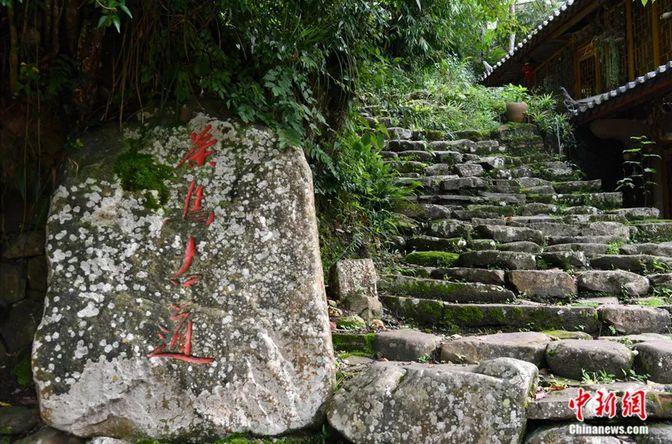 云南省普洱市寧洱縣那柯里村,游客走在茶馬古道遺址上體驗。劉冉陽 攝
