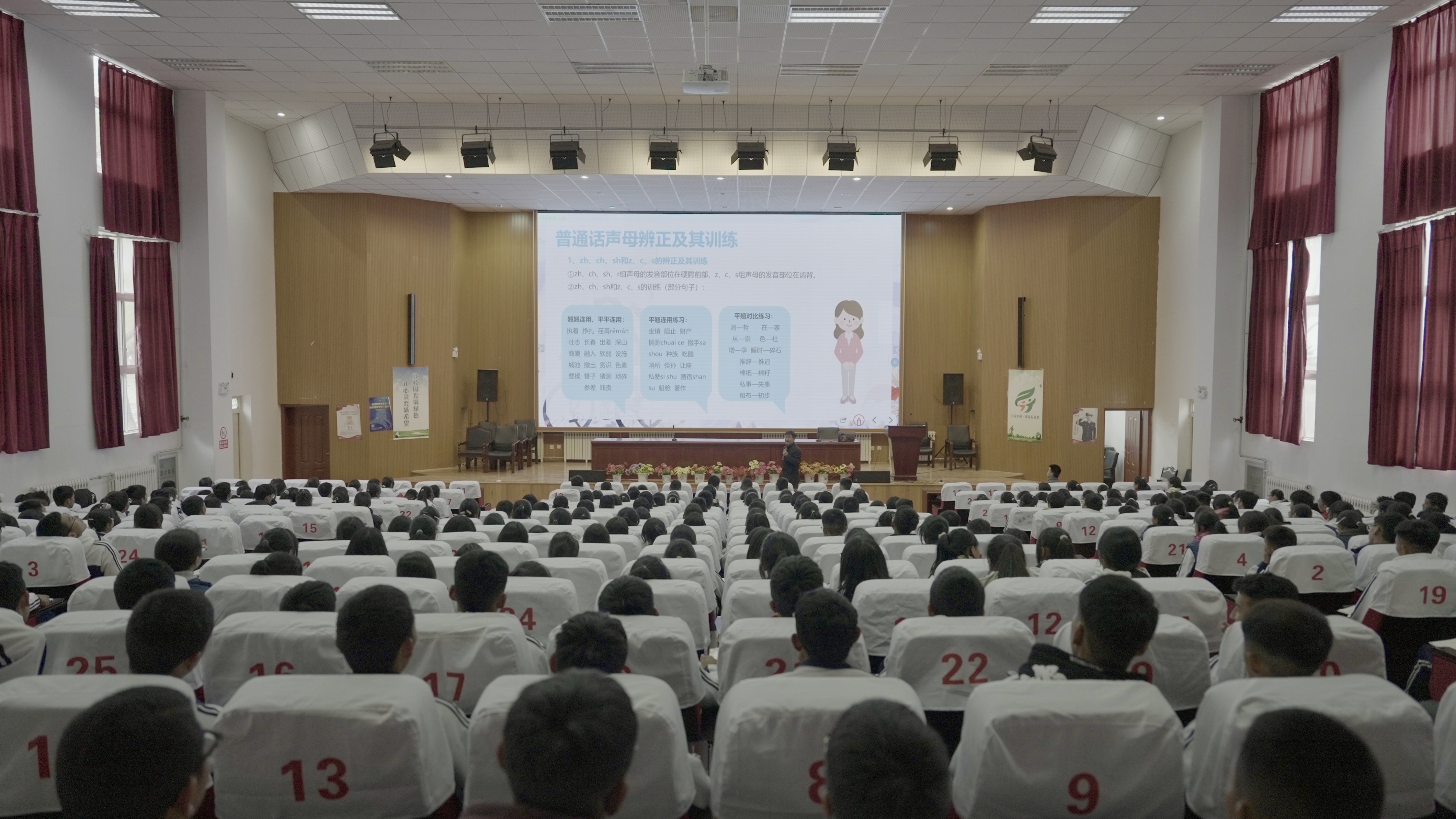 宣講以“推廣普及國(guó)家通用語(yǔ)言文字 鑄牢中華民族共同體意識(shí)”為主題,通過(guò)主題解讀、互動(dòng)練習(xí)等形式讓學(xué)生了解學(xué)國(guó)家通用語(yǔ)言文字的重要性,更加深刻地認(rèn)識(shí)和理解學(xué)習(xí)使用國(guó)家通用語(yǔ)言文字的意義。宣講老師以聲母、韻母的發(fā)聲練習(xí)及朗讀中國(guó)話等環(huán)節(jié)進(jìn)一步激發(fā)學(xué)生對(duì)國(guó)家通用語(yǔ)言文字的熱愛(ài),引導(dǎo)學(xué)生在學(xué)校生活和社會(huì)交往中講普通話,寫規(guī)范字,做文明人,爭(zhēng)做推廣和規(guī)范使用普通話的宣傳員、監(jiān)督員。