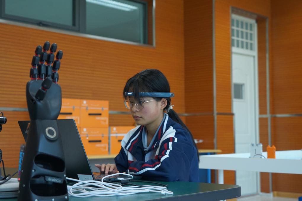果洛西寧民族中學(xué)學(xué)生在人工智能實驗室開展社團(tuán)活動。新華社記者 張子琪 攝