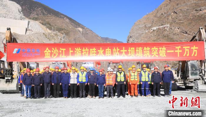 大壩填筑突破1000萬立方米儀式現(xiàn)場。華電金上公司供圖