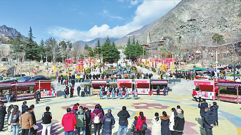 2月1日,農歷正月初四,阿壩州理縣雜谷腦河畔的國道317線上,車流量較平日多了不少。中午時分,抵近高山峽谷內國道一側的桃坪鎮(zhèn)桃坪羌寨,悅耳動聽的歌聲從寨子內傳來,當地文旅部門正在這里舉行送文化進景區(qū)活動。