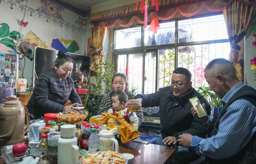 1月29日,孫建學(xué)叫上孫子和老家的家人視頻拜年。新華社記者 晉美多吉 攝