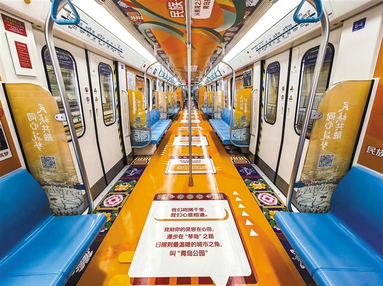 在青島地鐵“日喀則號”列車上,青島經(jīng)濟職業(yè)學(xué)校西藏班學(xué)生丁增央珍感嘆:“在車廂里仿佛能觸摸到家鄉(xiāng)的雪山和青稞田,掃碼還能看到藏戲表演,既親切又震撼!”